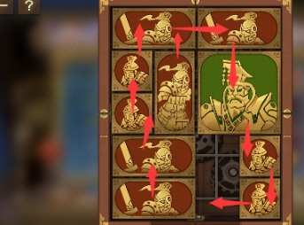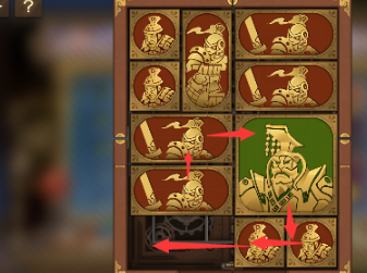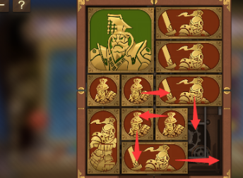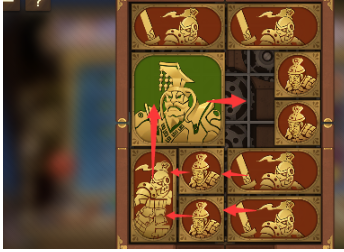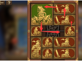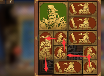 3、左上方的正方形向右移动,将军向下移动,右上方的长方形向左移动,其下方的长方形向上移动,正方形也向上移动。