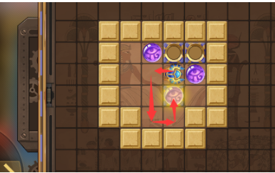 1、开局先往上走然后向左并向下到第三排珠子的左边将其推进凹槽内。