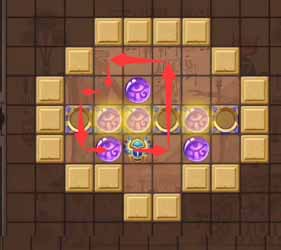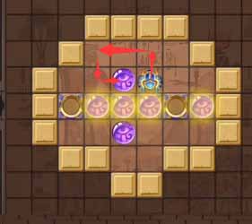 12、然后将左侧凹槽中的珠子顶到最左侧的凹槽,然后走到上方左侧的珠子将其顶到正下方的凹槽中。