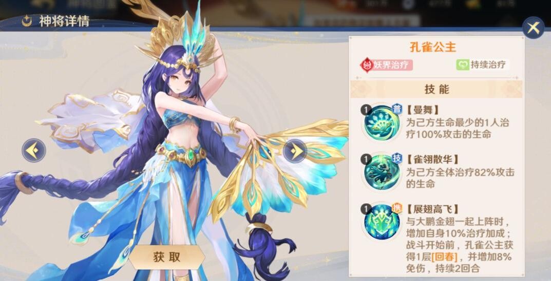 虽然说几乎每个阵营都有唯一橙色奶妈,但是孔雀公主不仅可以主动全队奶,【回春】的点对点奶可以让主C大鹏无限续命,即使奶不满也会给你一个吸血Buff让你回满!