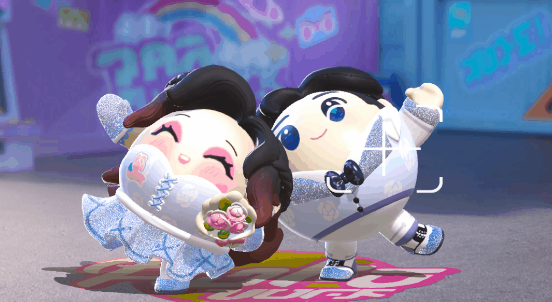 1、【糖心公主】和【糖心蛋总】甜蜜登场,裙身和西装上都点缀着朵朵白玫瑰,淡蓝色的蕾丝与纯白面料相结合,优雅又圣洁,象征爱情的忠贞不渝;