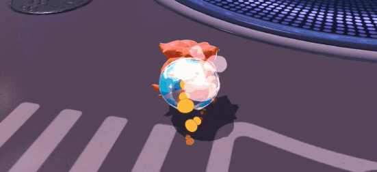 1、翻滚时在身后留下一道紫色的路径,夹杂着圆滚滚的白色小茨球;