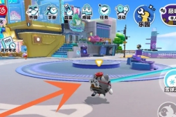 2、通过按住弹簧绳图标来控制方向,释放弹簧绳对准其他蛋仔或建筑物。
