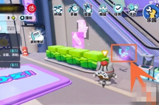 1、在蛋仔游戏大厅中,寻找并拾起弹簧绳道具。