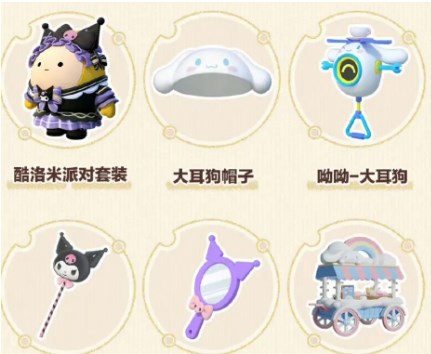 3、完成三丽鸥家族游园会活动获取:酷洛米派对套装、大耳狗帽子、大耳狗家具等。