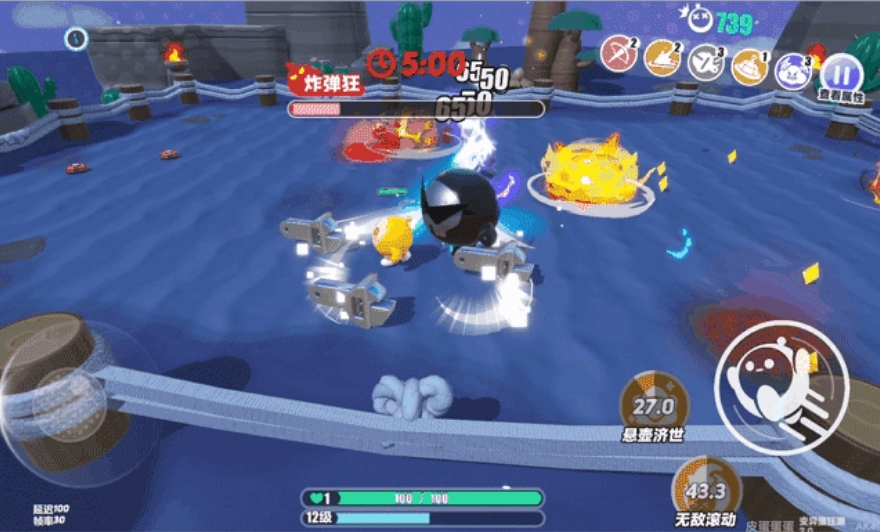 游戏正式开始,蛋仔可以从三种随机技能中选择你的武器技能。快运用你灵活的走位搭配技能,借助场地道具获得增益的同时——击败变异蛋拾取经验粒来提升等级吧!