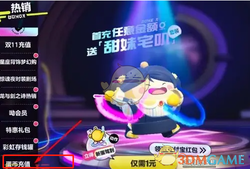 2、进入到热销界面即可在左侧导航栏点击蛋币充值。