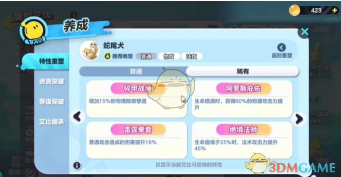 2、推荐性格:其他加物攻或法攻的都可以,比如:有冲劲,急躁,大胆等。