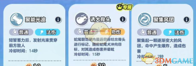 2、法攻推荐:诱犬骨头、聚能光波、聚集风团