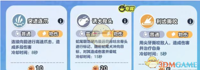 1、物攻推荐:诱犬骨头、突进连爪、利齿撒咬