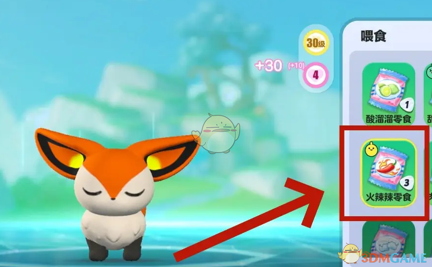 爆爆狐喜欢吃火辣辣的零食,可以增加30点亲密度。(吃不喜欢也不讨厌的零食增加20点亲密度)