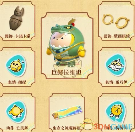 1、奖励包括:巨鳄拉维坦、生命之流昵称框、腰饰-卡诺卜罐、面饰-壁画眼镜、表情-扭捏、表情-蛋乃伊、动作-亡灵舞、动作-祈祷舞。