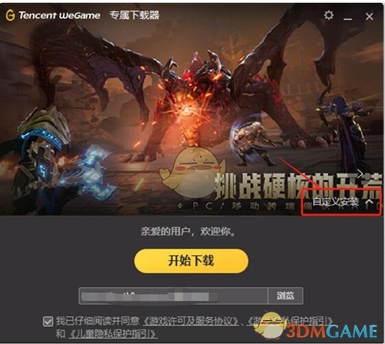 第二步:点击WeGameMiniloader,启动下载游戏安装包,也可以选择自定义安装调整安装位置(安装至纯英文路径)