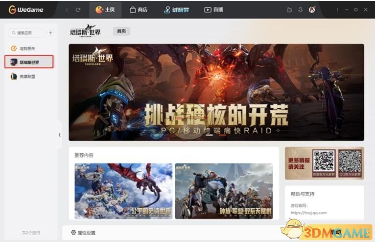 第九步:玩家再次登录时,也可以通过WeGame登录后查看左侧游戏列表进入塔瑞斯世界