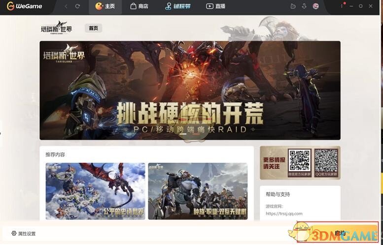 第六步:登录成功后,点击启动按钮,即可拉起塔瑞斯世界游戏