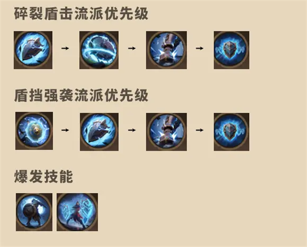 2、战盾体系也有两个技能碎裂盾击和盾挡强袭。前者可以群拉回血,后者附带控制。