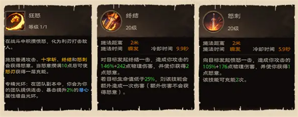 1、战士作为这类游戏中比较经典的职业,其强度受到大多数玩家的关注。塔瑞斯世界中战士下辖两个专精:愤怒和战盾,分别代表攻防两种流派。愤怒的两个基础技能怒刺和终结可以互相替换,终结有一定斩杀效果但是cd较长,怒刺施放比较频繁。