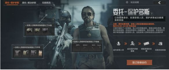 3、成功完成委托后可获得【多斯的私人支票】奖励,支票在活动兑换商店可以兑换限定外观奖励【巴拿马帽】等。(注意:若安保人员在完成委托前被淘汰,则无法获得支票奖励!)