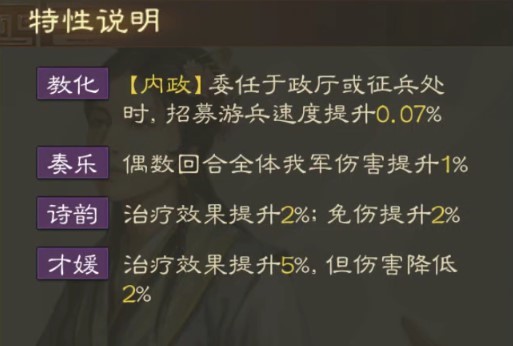 教化:[内政]委任于政厅或征兵处时,招募游兵速度提升0.07%