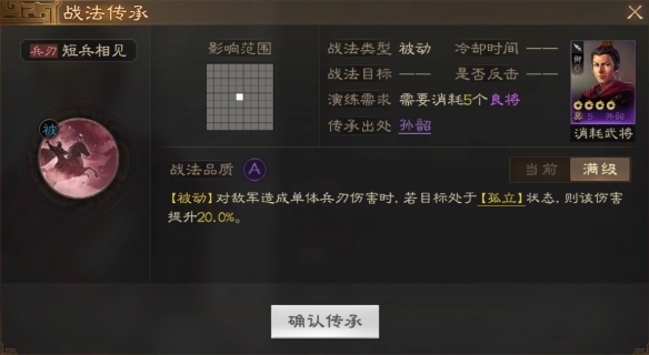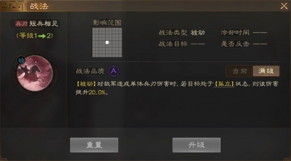 [被动]对敌军造成单体兵刀伤害时,若目标处于[孤立]状态。则谈伤害提升20.0%。