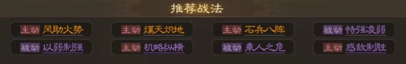 神火计差不多可以看成一个被动战法,所以周瑜的发挥也比较依赖其他两个战法的等级,至少1088的战法等级才能发挥出周瑜的输出。