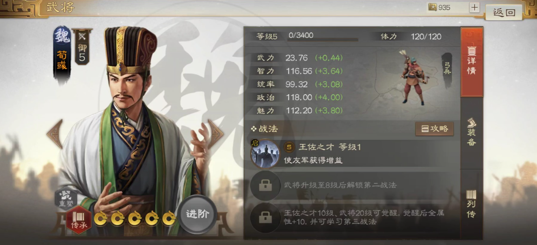 于禁阵容副T,上将之略配合自带战法给团队增加大幅属性,带张辽的话最好再带个节烈多谋给他解控。