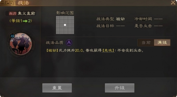 武力提升2~20。普攻获得【先攻】:不会受到反击。
