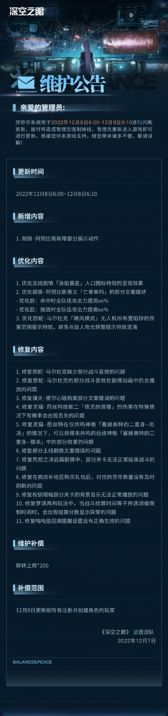 以上就是小编整理带来的深空之眼12月8日更新了什么,深空之眼12月8日更新公告,更多相关游戏攻略,请关注手游网!