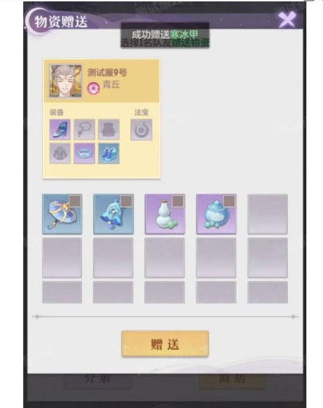 5、想要获取最终的胜利,队友间的扶持是必不可少的,除了妖灵外,法宝、装备、药品均可通过赠送功能转给队友。