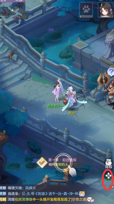 1、进入到长安幻想游戏中,点击如下图位置