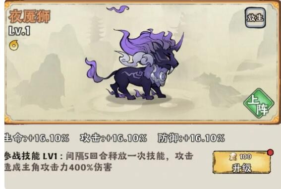 再看pvp,夜魇狮是一个不错的选择,不管内战还是外战都有不错的效果,搭配合适仙术,表演一口吞不在话下。