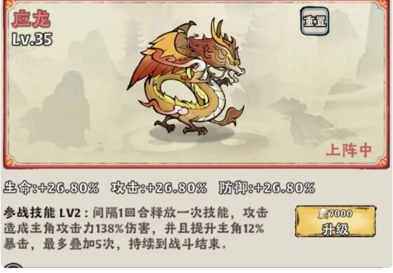 还有种选择就是应龙了,一回合一次的稳定输出,增加的高额暴率,简直是百搭了,可惜不买终身卡不能玩,毕竟0.2%的红色概率不是平民能玩转的。