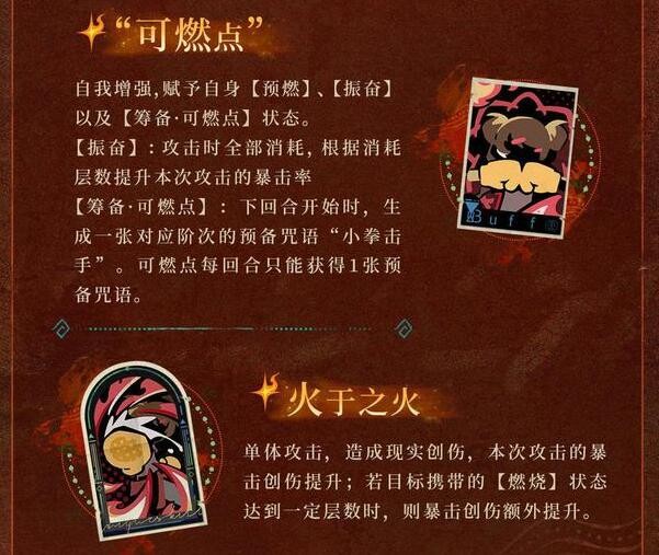 在新版本中,引入了“燃烧”和“印卡”机制,使她可能成为新体系核心输出角色。这一设计一定程度上减轻了发牌员的随机影响,从机制上看,她是一个充满创意的角色。