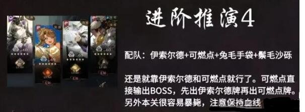 还是就靠伊索尔德和可燃点就行了。可燃点直接输出BOSS,先出伊索尔德牌再出可燃点牌。