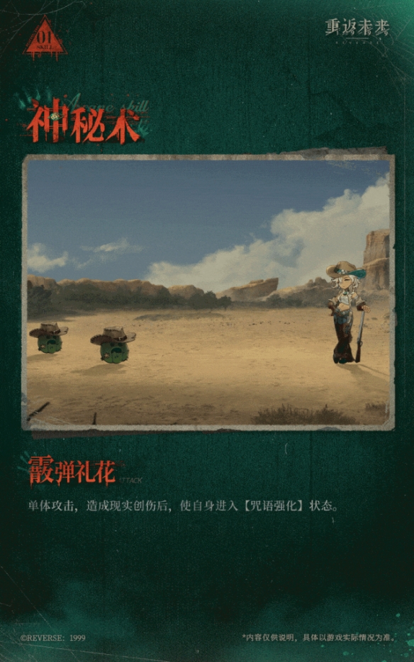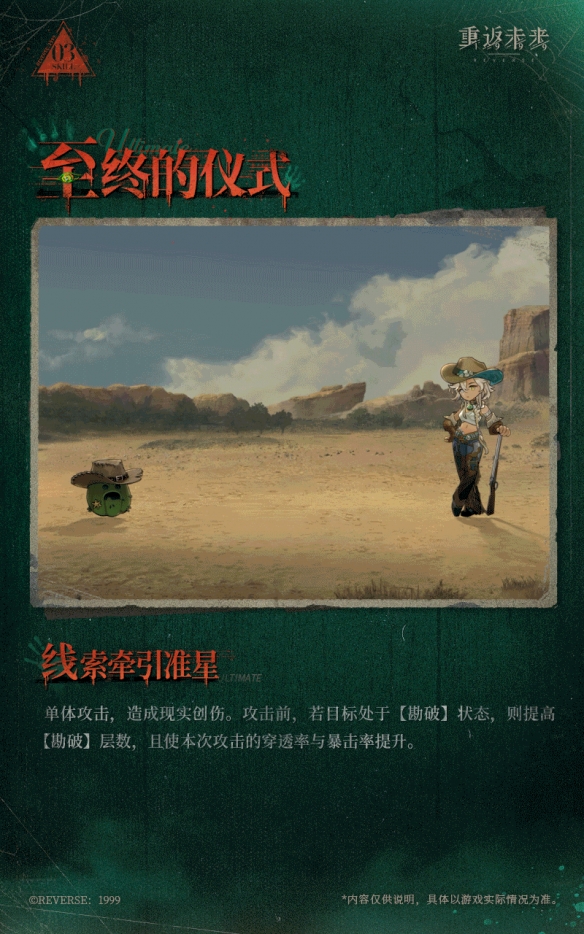 【落葬枪声】:单体攻击,造成现实创伤,二阶及以上时获得额外激情,三阶时必定暴击。