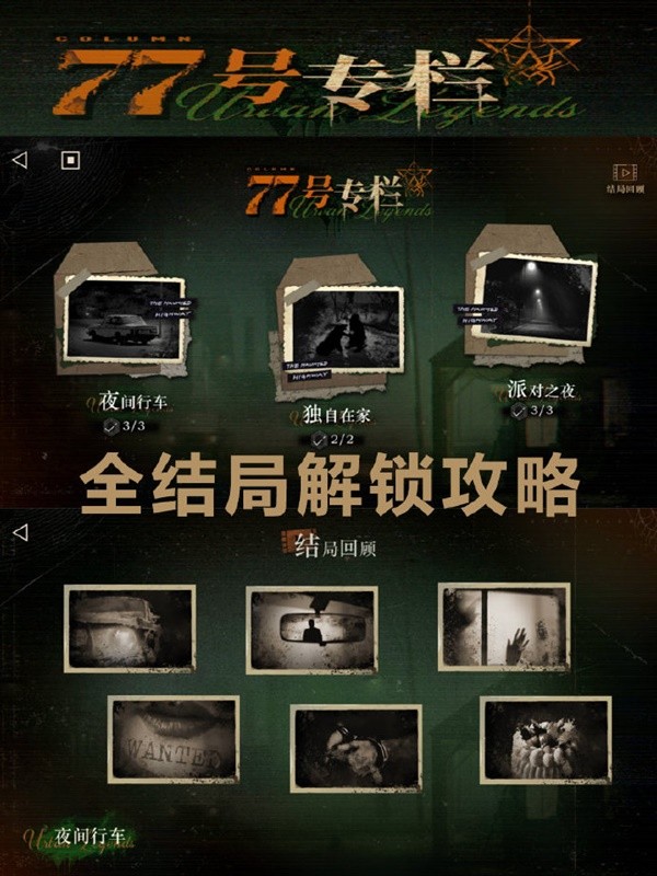 以上就是小编整理带来的77号专栏全结局解锁攻略,更多相关游戏攻略,请关注手游网!