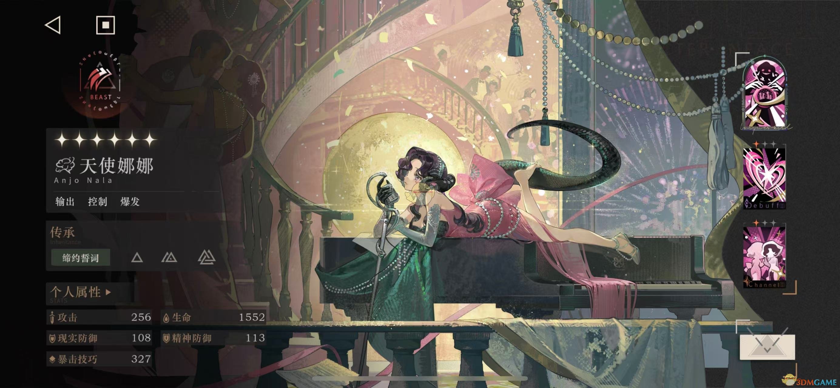 2、天使娜娜本身输出能力较强,通过一二技能迅速激活强大的三技能,能够造成巨大的伤害并实现100%的控制效果。