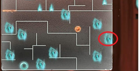2、大家需要先去右上角获取红色的技能球,然后就能穿过火墙了。