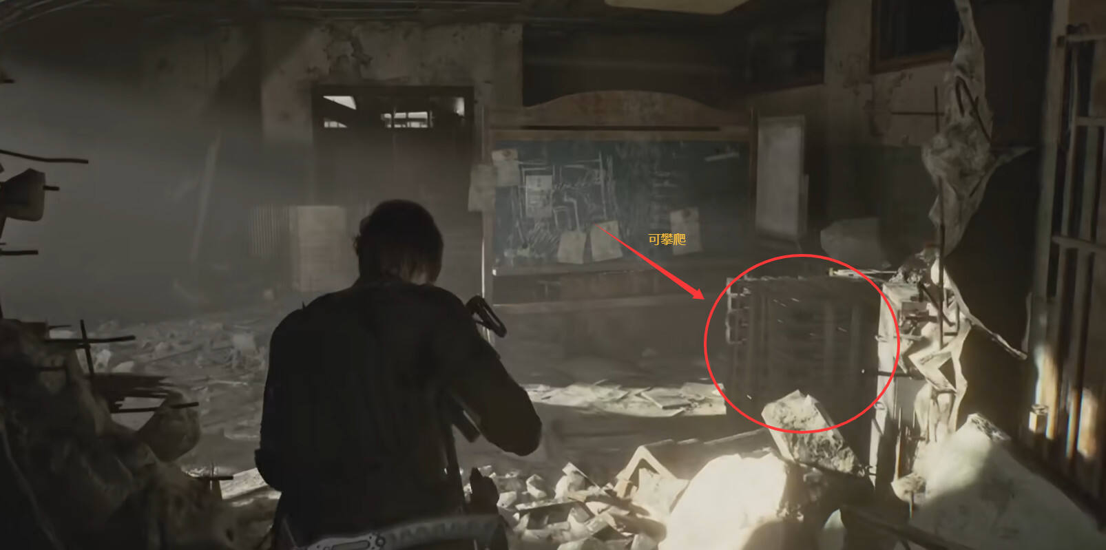 指挥室内的木板可以攀爬上去。