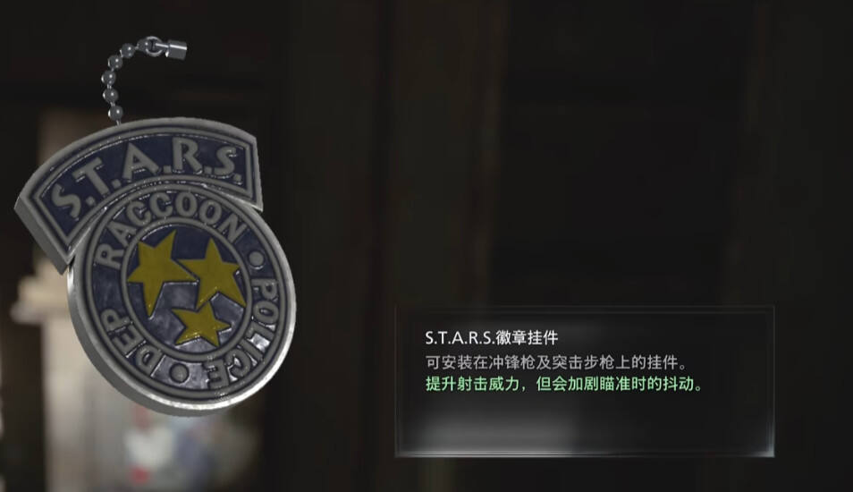 该挂件的获取需要现在二楼“S.T.A.R.S.办公室”内找到两份关于寻宝线索的文件,可以看到文件中,有东西藏在了电视机的架子上。之后就可以前往一层的“指挥室”内利用旁边堆叠的木板,爬上获取储物柜的钥匙了。