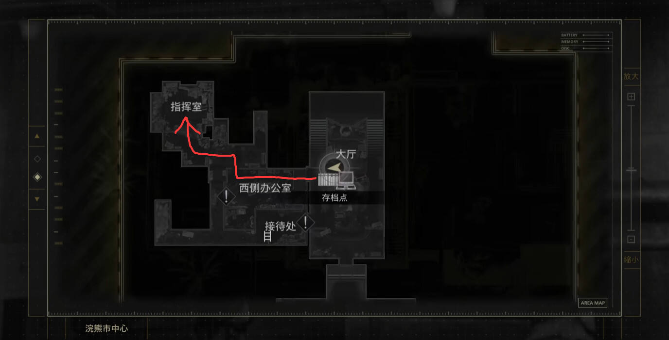 从警察局中心出发,来到剧情打开的二层出口。