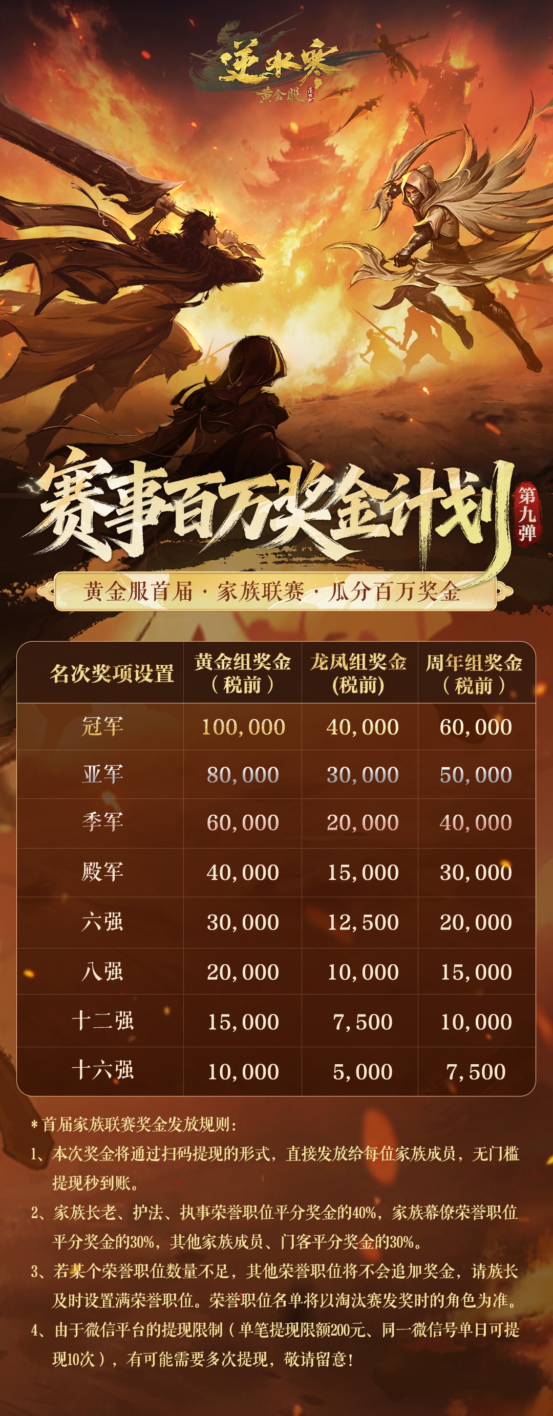 不过小寒也要提醒各位同门:本次百万奖金将根据家族职位,按比例直发个人手中。
