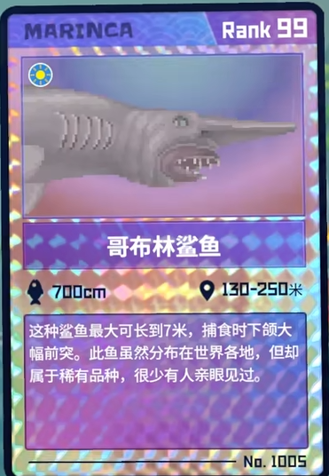 捕捉方法:先在鲛人村接下寻找小孩的任务,然后去海底洞穴可以找到哥布林鲨鱼,在路程上会看到一个红箱子,里面有老式步枪,玩家在面对哥布林鲨鱼的时候需要一直游,然后拉开距离使用老式步枪进行射击,多射击几次就能打败了。
