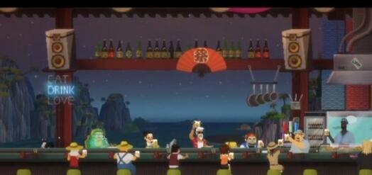 玩家完成鲛人族任务回到寿司店后,可以看到所有的NPC都在开派对。结束后戴夫躺在自己的床上,会触发一个关于游戏制作人相关信息的游戏。