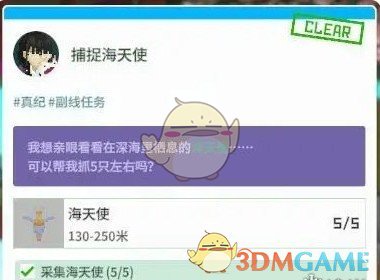 2、主线获得网兜后就可以在深海区域捕捉海天使,捕捉到第五只的时候会自动进入BOSS战,随后变成击败大海天使支线。