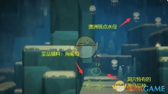 2、需要玩家准备好澳洲斑点水母、海葡萄、盐,盐去捡海里红色的调料锅里会出。