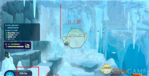 2、在冰河区域526米处往上游