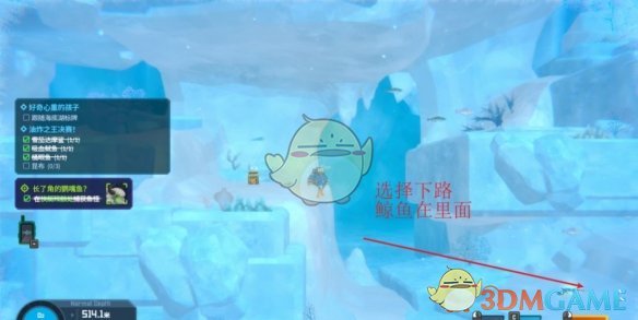 3、到达鲸鱼周围时,会触发剧情,玩一个追逐小游戏
