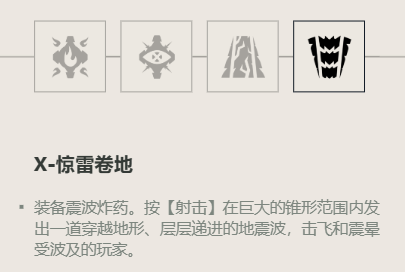装备是一颗撼地弹。直接点击【攻击键】,就能呈大型锥状在所有地形上释放连锁地震。