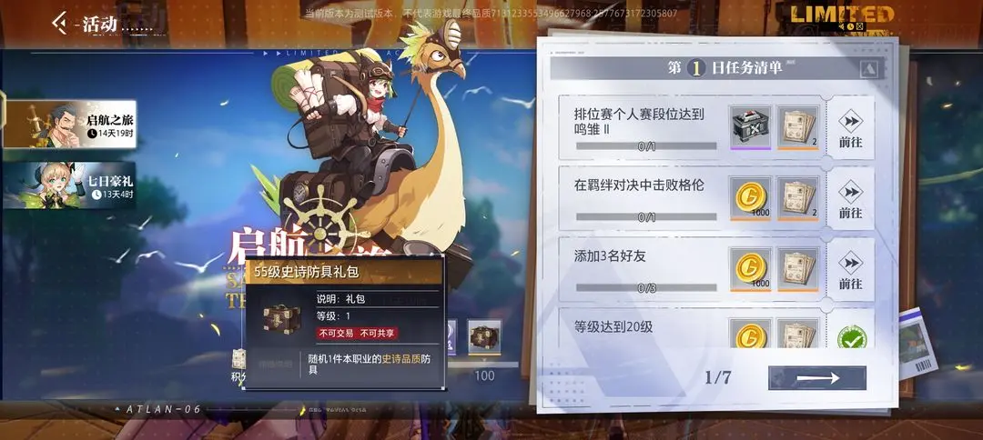 每位新玩家都能参加启航之旅活动,活动的终极奖励是一件本职业55级史诗品质防具。